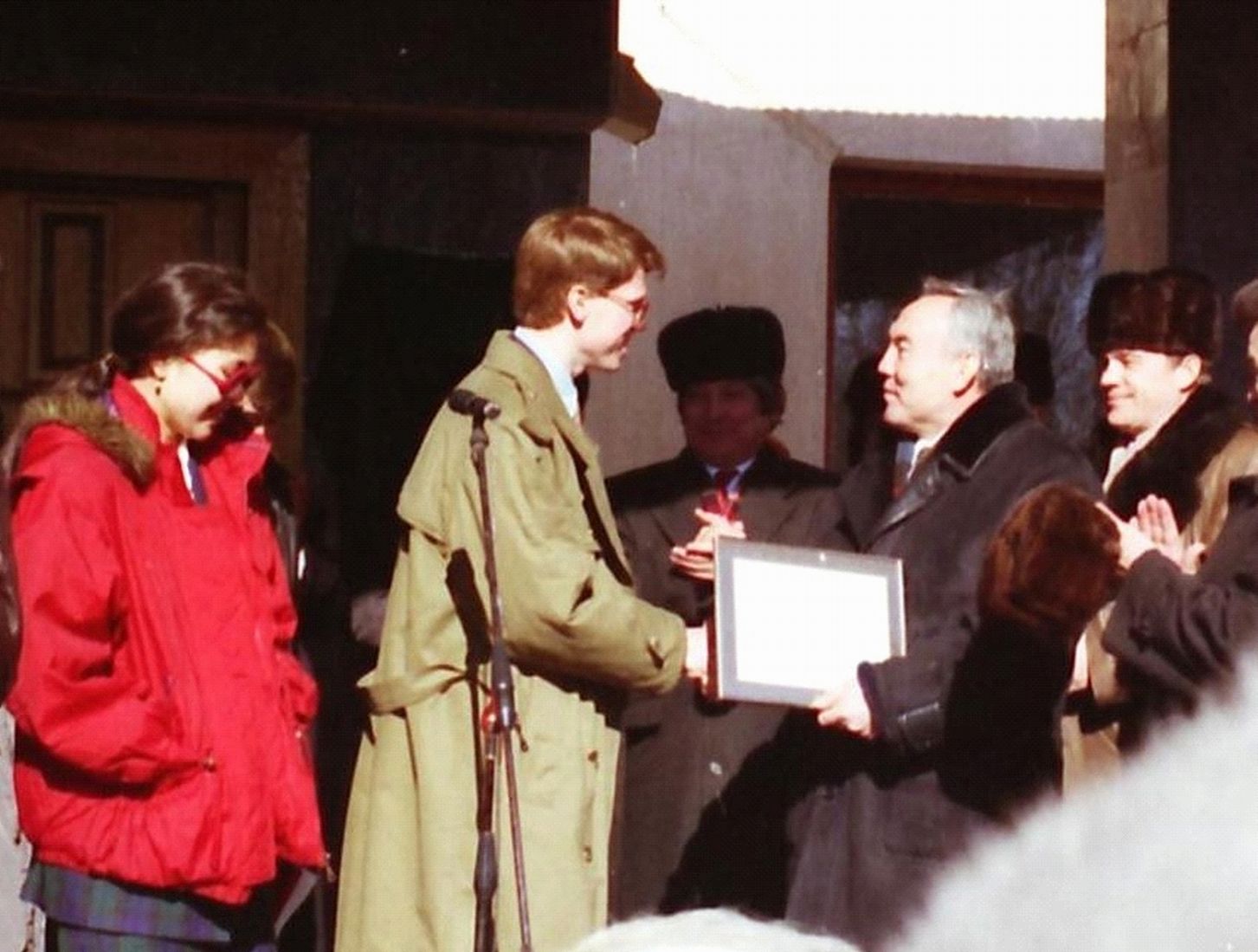 Kazakh American Free University is a university of international partnership, with the President of Kazakhstan Nursultan Nazarbayev as its Honorary Professor attending the opening ceremony (1994) and presenting the diplomas to the first graduates (1999).